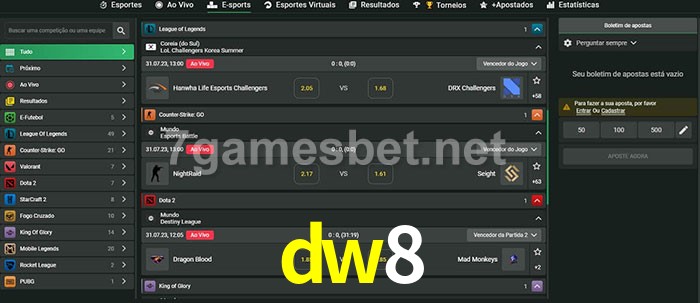 A aposta dw8 oferece aos jogadores a experiência mais conveniente de apostas em eSports!